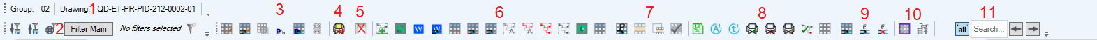 - Filter Main - Applies any set filter - See Project Filter, Model Filter, Equipment Filter, Property Filter, Rule Filter, Symbol Filter, Advanced Filter
