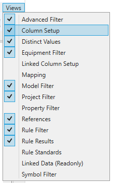 The Views menu in the top right corner of the window allows you to set which tabs are visible from the list of available views: