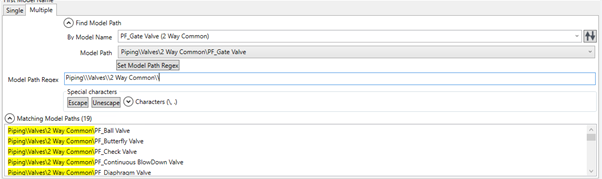 Here you first define a model in the group that you wish to connect, the click the button to write the path into the regex field, it is then a case of removing the model name and clicking on the