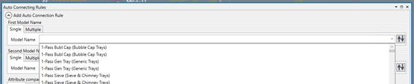 To Add a rule you should define the model(s) that you wish to connect, if you wish to connect a single model, you should select the item in the drop down list under the single tab