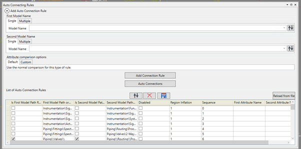Auto Connection rules are run using the button. It should be noted that during the configuration phase of a project, you will need to run, clear and revise the connection rules until you are satisfied with their outcomes.