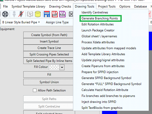 Once the P&ID has opened select “Generate Branching Points” from the Drawing Tools menu