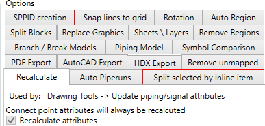 - Update piping/signal attributes Options Defined in the Recalculate Tab