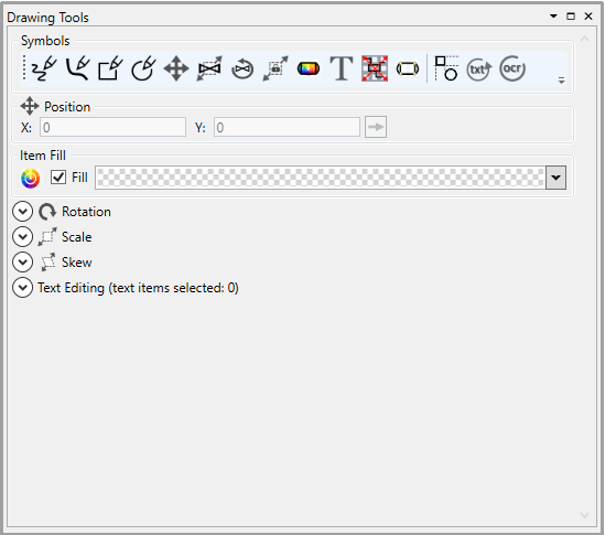 | Insert Text | Enable text to be placed on drawing at the location of the cursor when left clicked. will auto select the text once placed so that it can be editing in the text editing subpanel | |