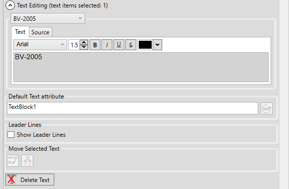 The source tab and default text attribute will allow you to set what engineering knowledge the piece of text is to represent to be used with the auto-label mapping functionallity.