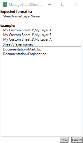 The Global Sheets and Layers Manager is used to administer the sheets and layers that should be in use on every drawing.
