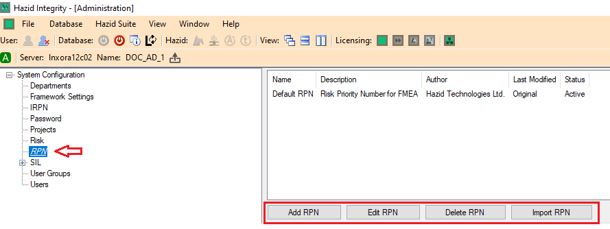 The button allows the Administrator to import a RPN Chart from an existing Hazop study.