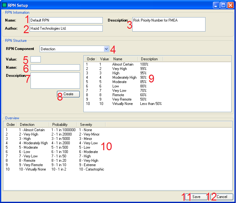 Risk Priority Numbers (RPN) is another method used to determine the SIL of Cause-Consequences within the HAZID Framework Process Safety Product and are created by clicking on the button, this opens the RPN Setup Menu. Selecting a RPN Chart and clicking on the