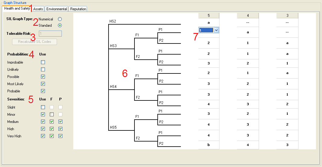 The SIL Graph Structure Panel is where the Administrator defines the Structure of the SIL Graph to be used in required SIL Specification in the Hazop Analysis.