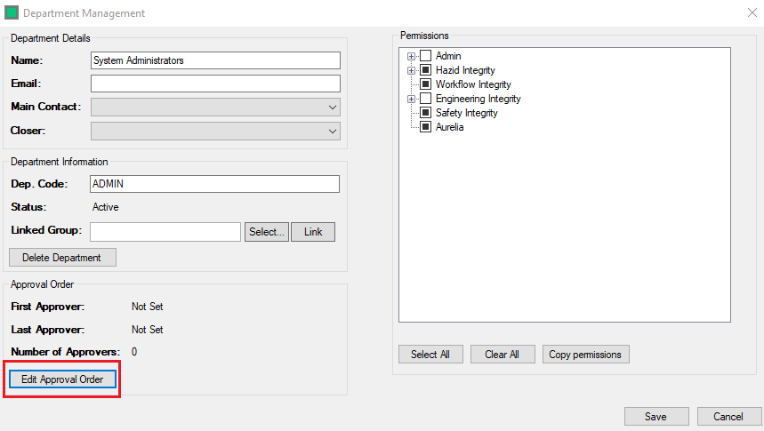 - The Administrator can Save the Action Approval Order Using the 'Save' button under Department Managment window.