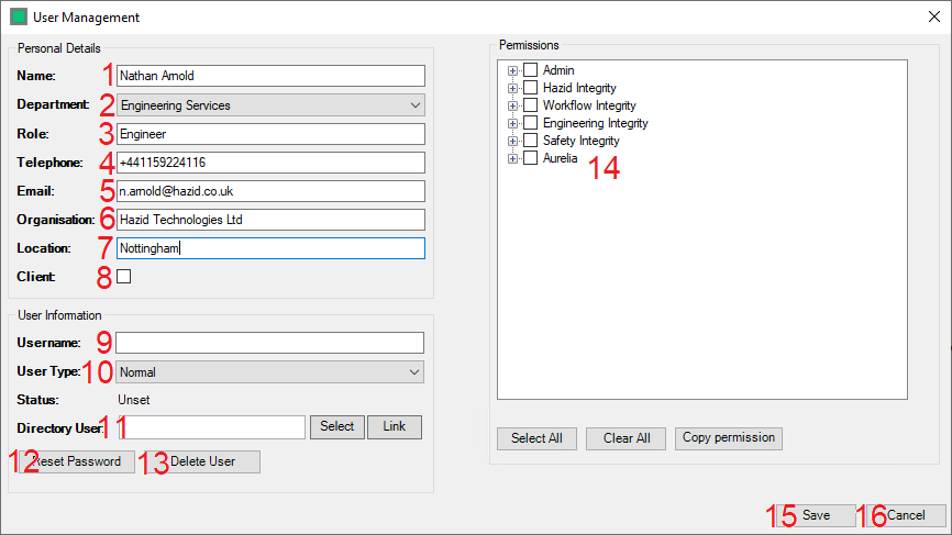 - The Administrator set whether or not the User is a Client here, this is used within Approval Chains in the Action Manager.