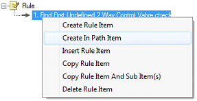 Upon completing a rule entry, you can add additional sections to the rule item that you have created by right clicking on the rule item and selecting either ‘Create Rule Item’, which creates a rule item in the same way as outlined above, or by selecting ‘Create In Path Item’, which allows you to search between two items of equipment.
