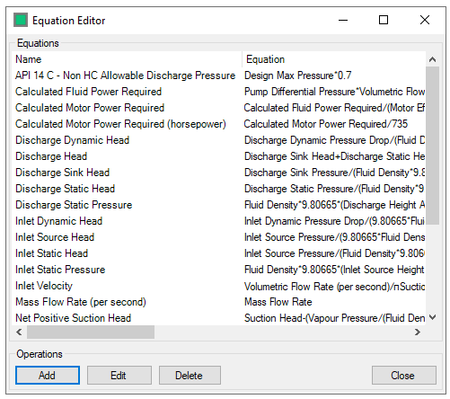 The Equation field allows you to add the equation as it will be calculated when used within P&ID Integrity.