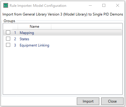 Importing the Model Configuration Rules allows the user to specify the model configuration rule groups that they wish to import