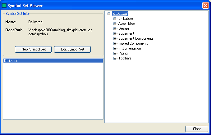- Name - The Name of the current symbol set as imported from SmartPlant P&ID