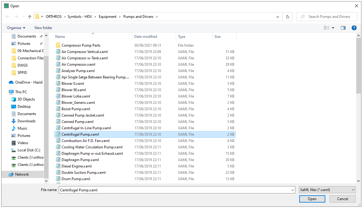 To do this, you select the model you wish to add graphics to and click on the button, this opens the xaml file selector.