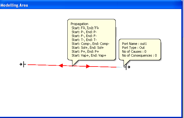 Hovering on either a Port or the Propagation lines in the modeling area pops up a summary of the information held at that point.