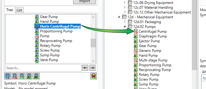 To map an symbol that has not been mapped automatically, drag and drop it onto the model that you wish to map it to