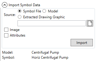 The Import Symbol Data panel lets you import the graphical data and attributes from a symbol into a model