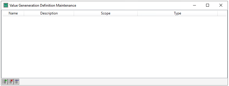 To add a Value Generation Definition, click on the button (an existing item in the list can be edited by selecting it and clicking on the