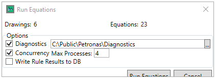 The Window displays the number of equations that will be run, and the number of drawings that they will be run on.