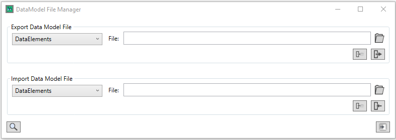 The export process is carried out through the "Export Data Model File" panel in the same fashion as the import, with the exception that the locations specified are to write to, rather than import from.