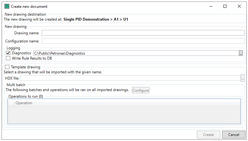 The Template drawing section allows the user to specify a template hdx file via the button, as well as configure Multi Batch Operations via the
