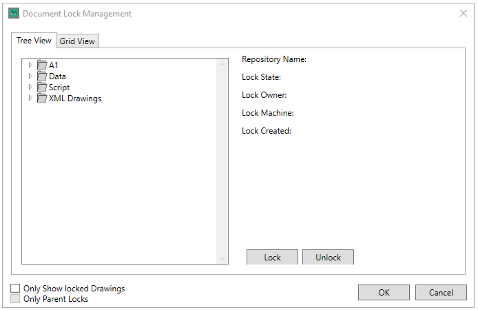 The check boxes allow the user to filter the tree/grid to only show Drawings that are locked, or to only show locked parent items.