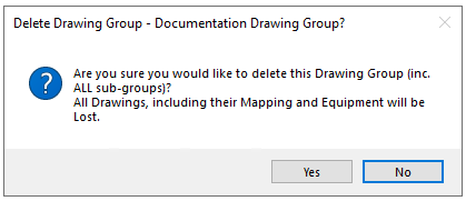 When deleting a selected Drawing Group all sub item including nested Drawing Groups, P&IDs and Configurations and associated information will be deleted also.
