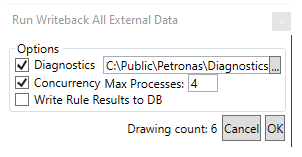 Here the user selects to write diagnostics to a specified location, the concurrency and whether or not to write the rule results to the database.