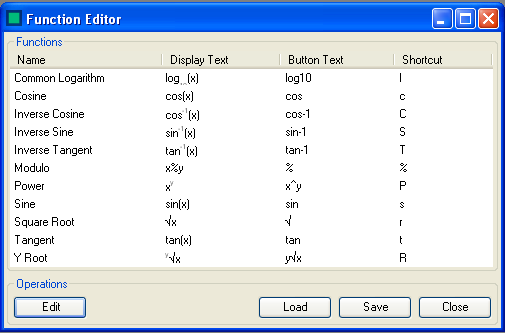 - Display Format - How you wish the function to be displayed when in use in a calculation. (Selecting Superscript or subscript will enact on the selected text)