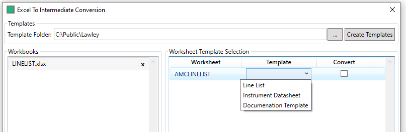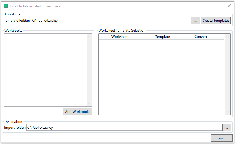 The Template folder is the location where the Excel to Intermediate conversion templates are stored, and can be set via the button, addtional templates are made in the Excel Template Creation via the
