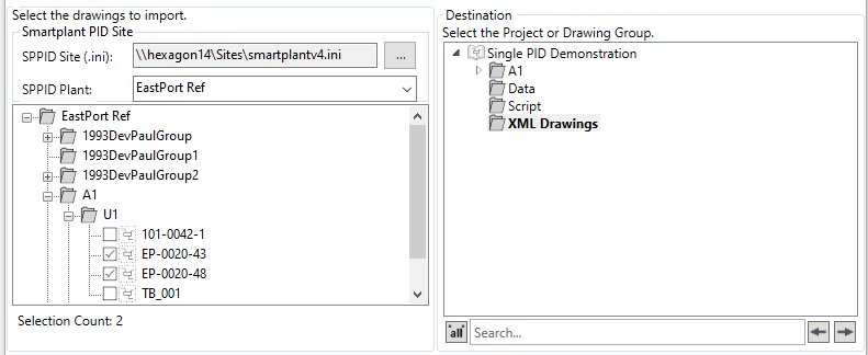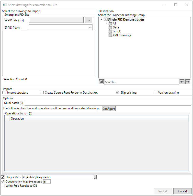 The first step is to select the SPPID .ini via the button, and set the destination to import the converted HDX files to