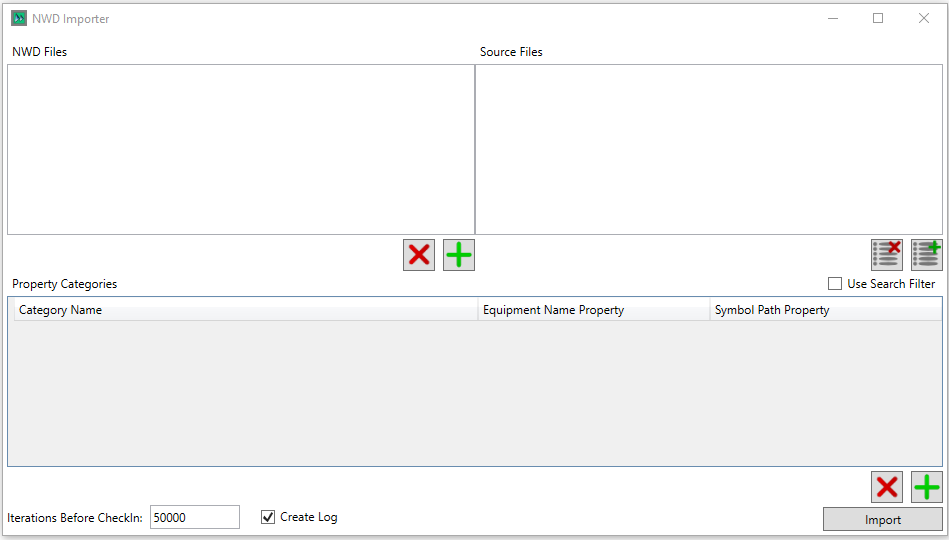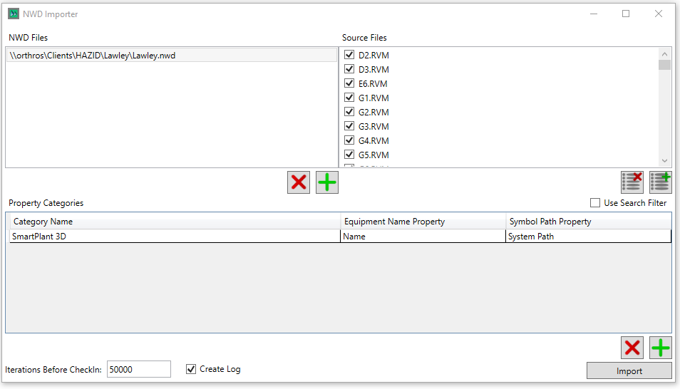The Property Categories allows the user to specify the property categories they wish to import from Navisworks, they can be added with the button and removed with the