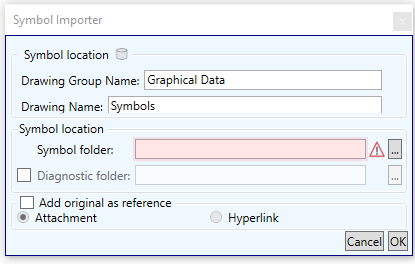 The symbols are imported in to the specified drawing group and drawing, and are imported from a Symbol folder defined using the button.