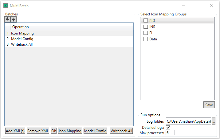 The Run options allow the user to define the logging and the number of CPU processes the multi batch operation will use