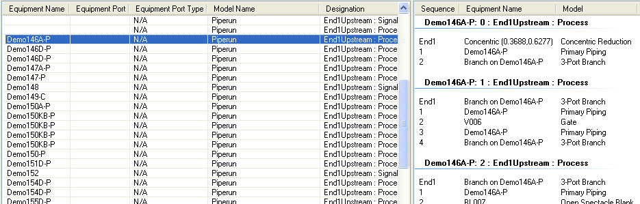 When selecting an item within a piperuns selecting the bottom panel displays the ports assigned.