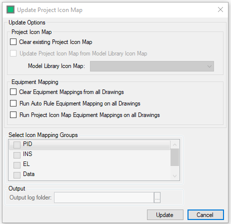 - Update Project Icon Mapping from Model Library - Will Update the Project Icon Mapping with the selected Mapping from the Library. Only Project symbols without an existing mapping will be updated.