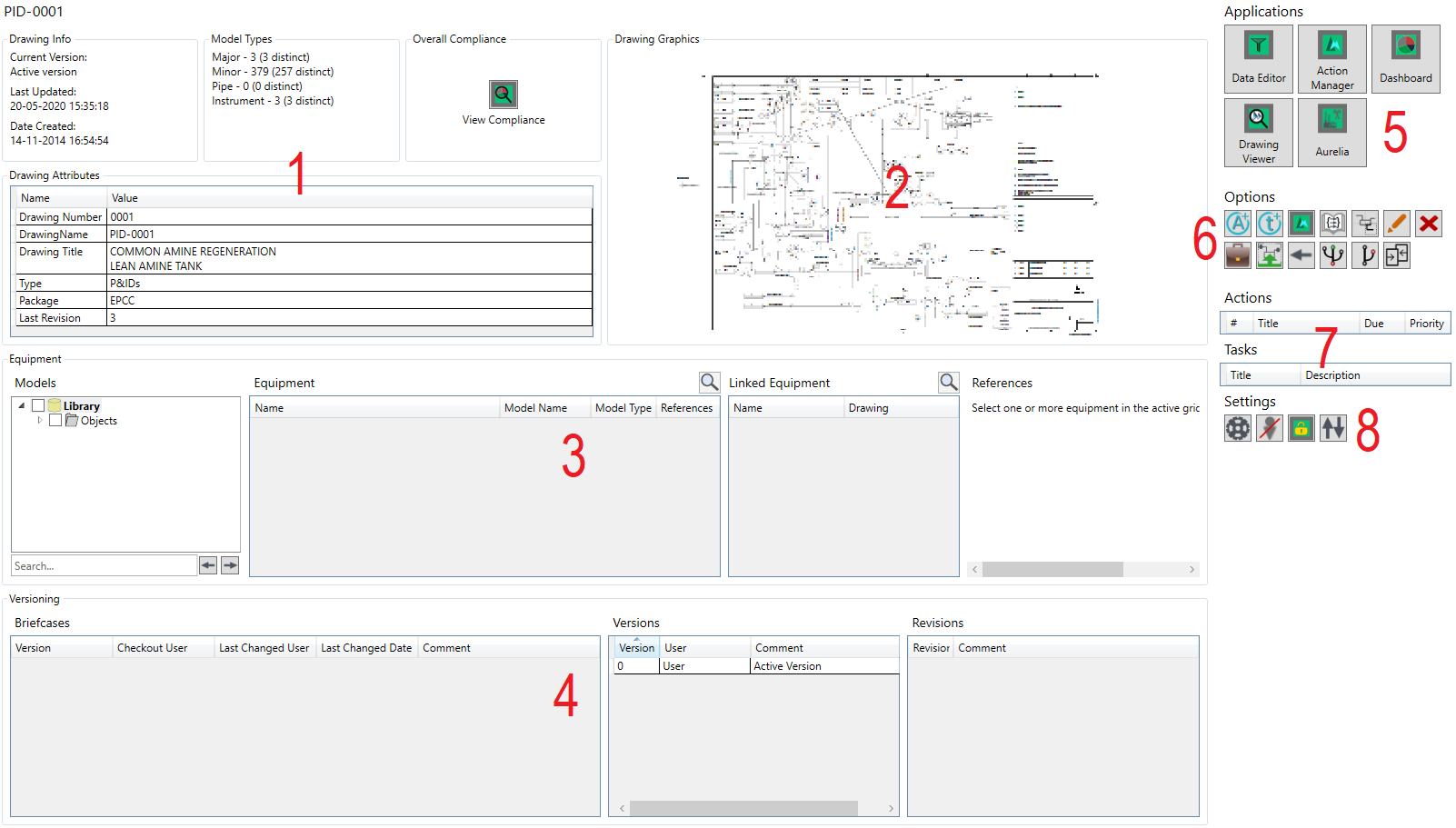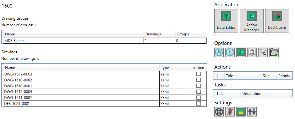 - Action & Tasks - Lists the user's visible Actions and Tasks on items within the drawing group